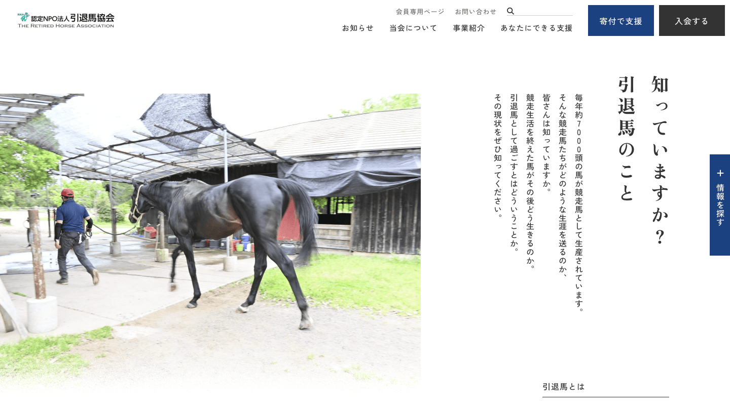 初めて訪れる方の「知りたい」という想いを、理解・行動へ導くため、引退馬について知ることができるページを新設。