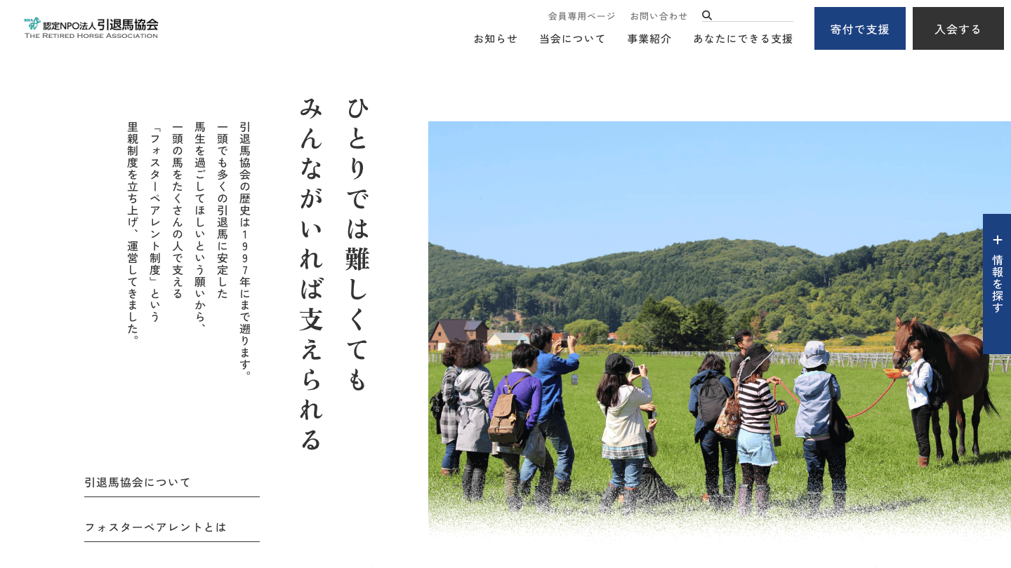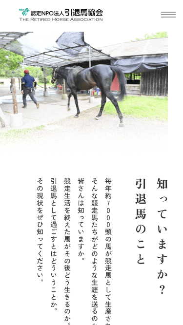 引退馬協会様は、1頭でも多くの引退馬に安定した馬生を過ごしてほしいという思いから